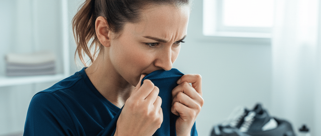 Most activewear is made from synthetic fibres that are hydrophobic (they repel water) and oleophilic (they attract oils). They’re great at pulling sweat off your skin to keep you dry — but they also latch onto body oils. That combination creates a perfect storm in a normal wash: